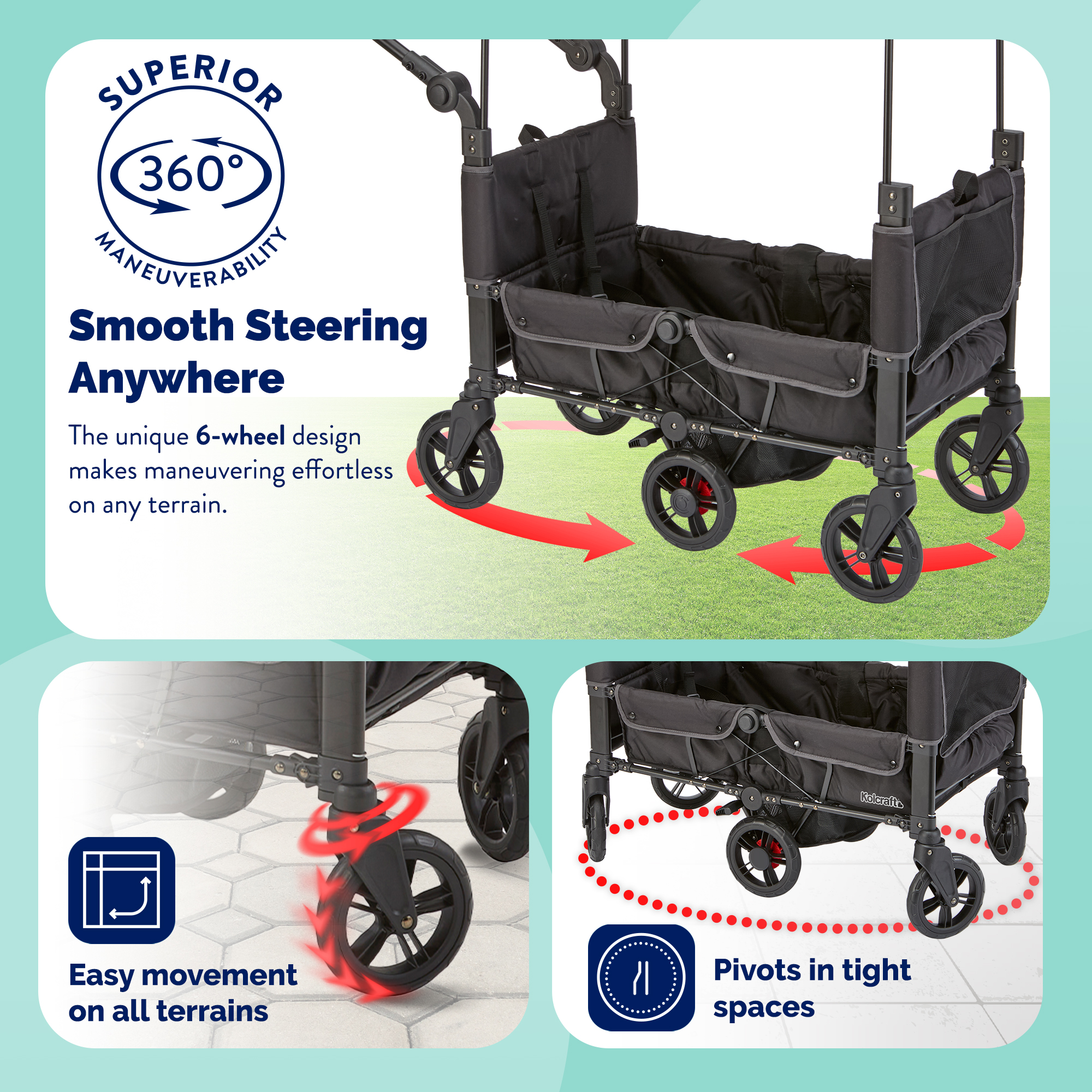 Kolcraft Cloud 360 Plus Stroller Wagon – KT015-BGK Model: KT015-BGK Added by Brent Borhauer on March 12, 2026 Categories:Media Tags: Available Images and Media Main Image Marketing Images Product Image Original: 3811 x 3811 Swatch: 150 x 150 Medium: 800 x 800 Large: 1000 x 1000 Additional Marketing Images Beauty shot Original: 3811 x 3811 Swatch: 150 x 150 Medium: 800 x 800 Large: 1000 x 1000 360 graphic Original: 3811 x 3811 Swatch: 150 x 150 Medium: 800 x 800 Large: 1000 x 1000 Beauty / Folded Original: 3816 x 3816 Swatch: 150 x 150 Medium: 800 x 800 Large: 1000 x 1000 Holds infant car seats Original: 2000 x 2000 Swatch: 150 x 150 Medium: 800 x 800 Large: 1000 x 1000 Smooth steering Original: 2000 x 2000 Swatch: 150 x 150 Medium: 800 x 800 Large: 1000 x 1000 Walk in the park Original: 2000 x 2000 Swatch: 150 x 150 Medium: 800 x 800 Large: 1000 x 1000 Compact and easy to fold Original: 2000 x 2000 Swatch: 150 x 150 Medium: 800 x 800 Large: 1000 x 1000 Large capacity Original: 2000 x 2000 Swatch: 150 x 150 Medium: 800 x 800 Large: 1000 x 1000 Features Original: 2000 x 2000 Swatch: 150 x 150 Medium: 800 x 800 Large: 1000 x 1000 Storage Original: 2000 x 2000 Swatch: 150 x 150 Medium: 800 x 800 Large: 1000 x 1000