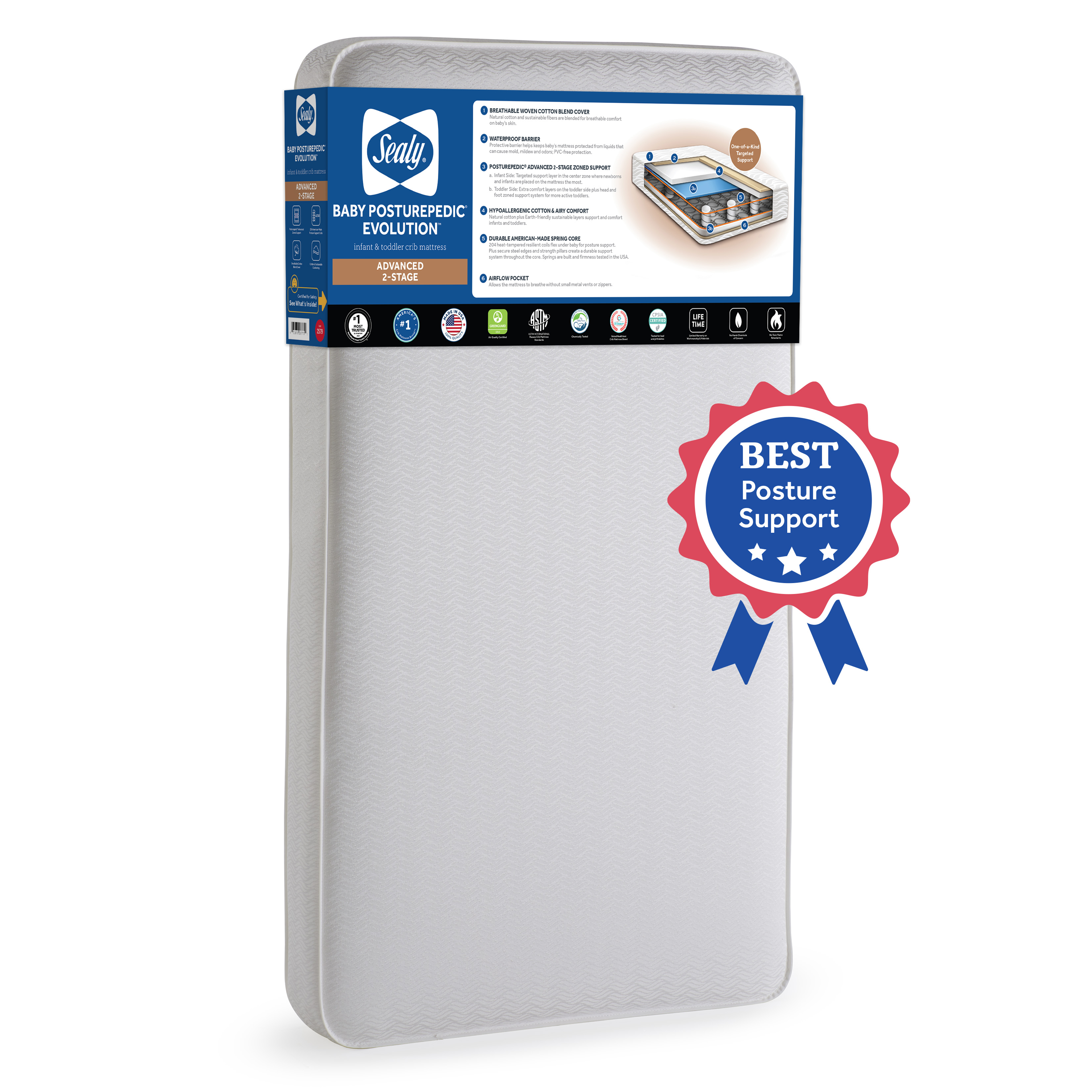 Sealy Baby Posturepedic Evolution 2-Stage Crib Mattress (Best Seller) Model: EM612 Added by Brent Borhauer on October 28, 2025 Categories:Best Seller Tags: Available Images and Media Main Image Marketing Images Product Image Original: 3300 x 3300 Swatch: 150 x 150 Medium: 800 x 800 Large: 1000 x 1000 Additional Marketing Images Original: 3300 x 3300 Swatch: 150 x 150 Medium: 800 x 800 Large: 1000 x 1000 Original: 2000 x 2000 Swatch: 150 x 150 Medium: 800 x 800 Large: 1000 x 1000 Original: 2000 x 2000 Swatch: 150 x 150 Medium: 800 x 800 Large: 1000 x 1000 Original: 2000 x 2000 Swatch: 150 x 150 Medium: 800 x 800 Large: 1000 x 1000