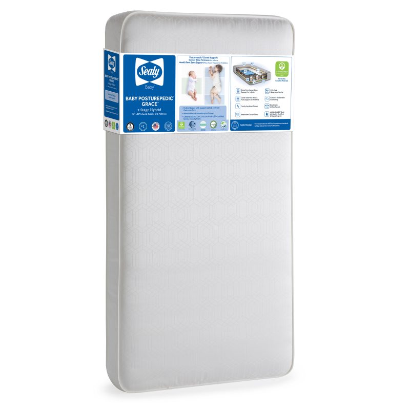 Sealy Baby Posturepedic Grace 2-Stage Hybrid Crib and Toddler Mattress Model: EM611-DIA1 | Part: EM611-DIA1 Added by Alissa Pocius on October 27, 2022 Categories:Bedding > Mattress > Media > Sealy Mattress Tags: Available Images and Media Main Image Marketing Images Product Image Original: 3300 x 3300 Swatch: 150 x 150 Medium: 800 x 800 Large: 1000 x 1000 Additional Marketing Images Beauty shot Original: 3300 x 3300 Swatch: 150 x 150 Medium: 800 x 800 Large: 1000 x 1000 Beauty shot GG/CP Original: 3300 x 3300 Swatch: 150 x 150 Medium: 800 x 800 Large: 1000 x 1000 NEW - DIA_GEM SnugFit Promise Original: 2000 x 2000 Swatch: 150 x 150 Medium: 800 x 800 Large: 1000 x 1000 NEW - DIA_GEM Posturepedic Advanced Zone Support Original: 2000 x 2000 Swatch: 150 x 150 Medium: 800 x 800 Large: 1000 x 1000 Quality Original: 2000 x 2000 Swatch: 150 x 150 Medium: 800 x 800 Large: 1000 x 1000 Waterproof & cotton comfort Original: 2000 x 2000 Swatch: 150 x 150 Medium: 800 x 800 Large: 1000 x 1000 Certified safe Original: 2000 x 2000 Swatch: 150 x 150 Medium: 800 x 800 Large: 1000 x 1000 2-Stage firmness Original: 2000 x 2000 Swatch: 150 x 150 Medium: 800 x 800 Large: 1000 x 1000 Zoned comfort Original: 2000 x 2000 Swatch: 150 x 150 Medium: 800 x 800 Large: 1000 x 1000 Hybrid design Original: 2000 x 2000 Swatch: 150 x 150 Medium: 800 x 800 Large: 1000 x 1000 NEW - DIA_GEM Natural Cotton & Sustainable Cushioning Inside Original: 2000 x 2000 Swatch: 150 x 150 Medium: 800 x 800 Large: 1000 x 1000 NEW - DIA_GEM Breathable Cotton Blend Cover Original: 2000 x 2000 Swatch: 150 x 150 Medium: 800 x 800 Large: 1000 x 1000 Firm and safe Original: 3013 x 3013 Swatch: 150 x 150 Medium: 800 x 800 Large: 1000 x 1000 America's #1 Original: 2000 x 2000 Swatch: 150 x 150 Medium: 800 x 800 Large: 1000 x 1000 Voted #1 Original: 2000 x 2000 Swatch: 150 x 150 Medium: 800 x 800 Large: 1000 x 1000 Made in USA Original: 2000 x 2000 Swatch: 150 x 150 Medium: 800 x 800 Large: 1000 x 1000 Certi-PUR Original: 2000 x 2000 Swatch: 150 x 150 Medium: 800 x 800 Large: 1000 x 1000 Greenguard Original: 800 x 800 Swatch: 150 x 150 Medium: 800 x 800 Large: 800 x 800