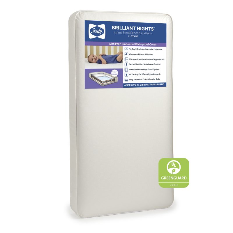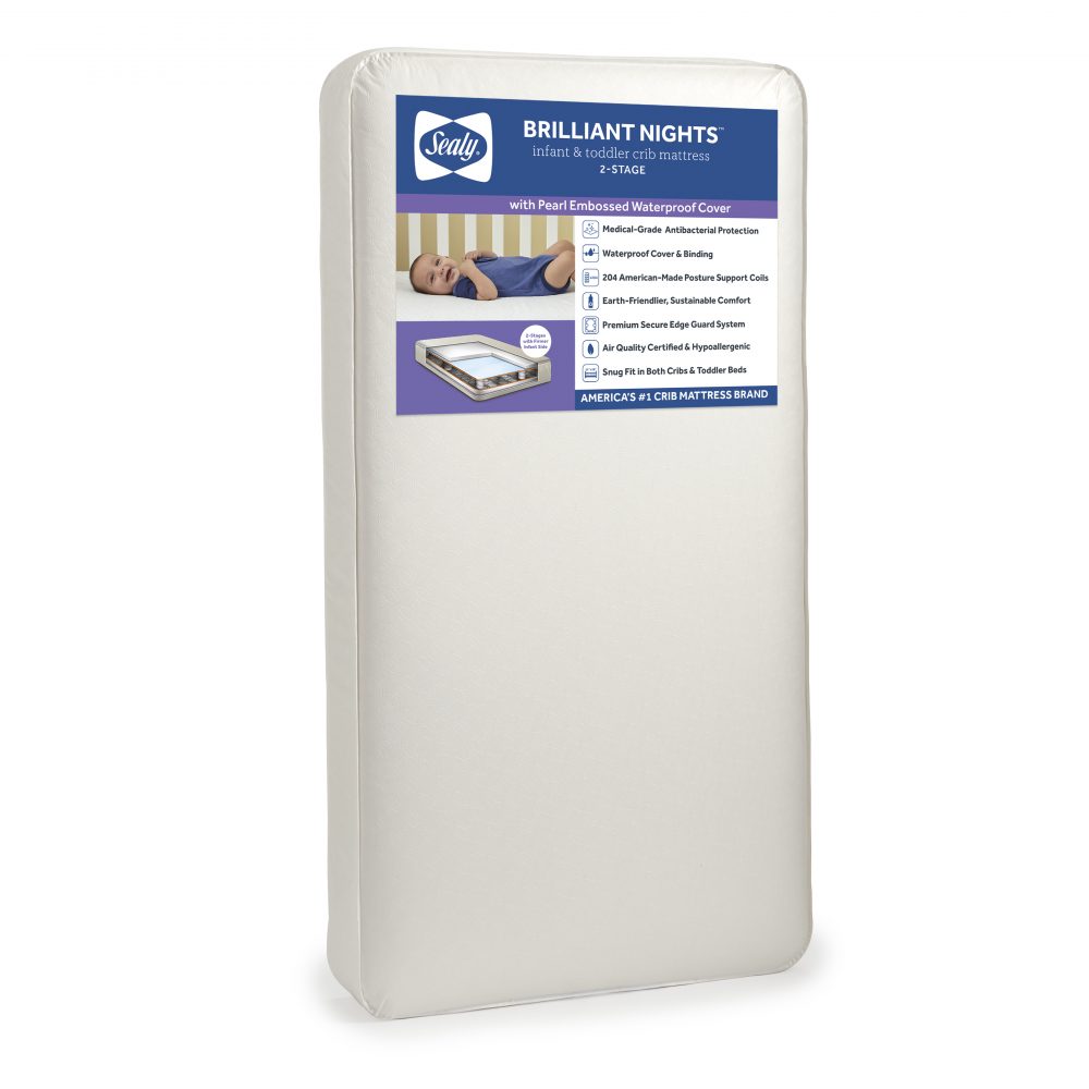 Sealy Brilliant Nights 2-Stage Crib and Toddler Mattress Model: EM442-FTN_RDN Added by Brent Borhauer on May 7, 2024 Categories:Mattress > Sealy Mattress Tags: Available Images and Media Main Image Marketing Images Product Image Original: 3300 x 3300 Swatch: 150 x 150 Medium: 800 x 800 Large: 1000 x 1000 Additional Marketing Images FTN to RDN beauty shot Original: 3300 x 3300 Swatch: 150 x 150 Medium: 800 x 800 Large: 1000 x 1000 FTN to RDN beauty shot with GG Original: 3300 x 3300 Swatch: 150 x 150 Medium: 800 x 800 Large: 1000 x 1000 Mattress in crib Original: 2000 x 2000 Swatch: 150 x 150 Medium: 800 x 800 Large: 1000 x 1000 Certifications Original: 2000 x 2000 Swatch: 150 x 150 Medium: 800 x 800 Large: 1000 x 1000 Waterproof Original: 2000 x 2000 Swatch: 150 x 150 Medium: 800 x 800 Large: 1000 x 1000 Snug Fit Original: 2000 x 2000 Swatch: 150 x 150 Medium: 800 x 800 Large: 1000 x 1000 Made in USA Original: 2000 x 2000 Swatch: 150 x 150 Medium: 800 x 800 Large: 1000 x 1000 FTN to RDN 2-Stage Original: 2000 x 2000 Swatch: 150 x 150 Medium: 800 x 800 Large: 1000 x 1000 Hospital-grade Original: 2000 x 2000 Swatch: 150 x 150 Medium: 800 x 800 Large: 1000 x 1000 Posture support Original: 2000 x 2000 Swatch: 150 x 150 Medium: 800 x 800 Large: 1000 x 1000 GG Certified Original: 800 x 800 Swatch: 150 x 150 Medium: 800 x 800 Large: 800 x 800 Voted #1 Original: 2000 x 2000 Swatch: 150 x 150 Medium: 800 x 800 Large: 1000 x 1000