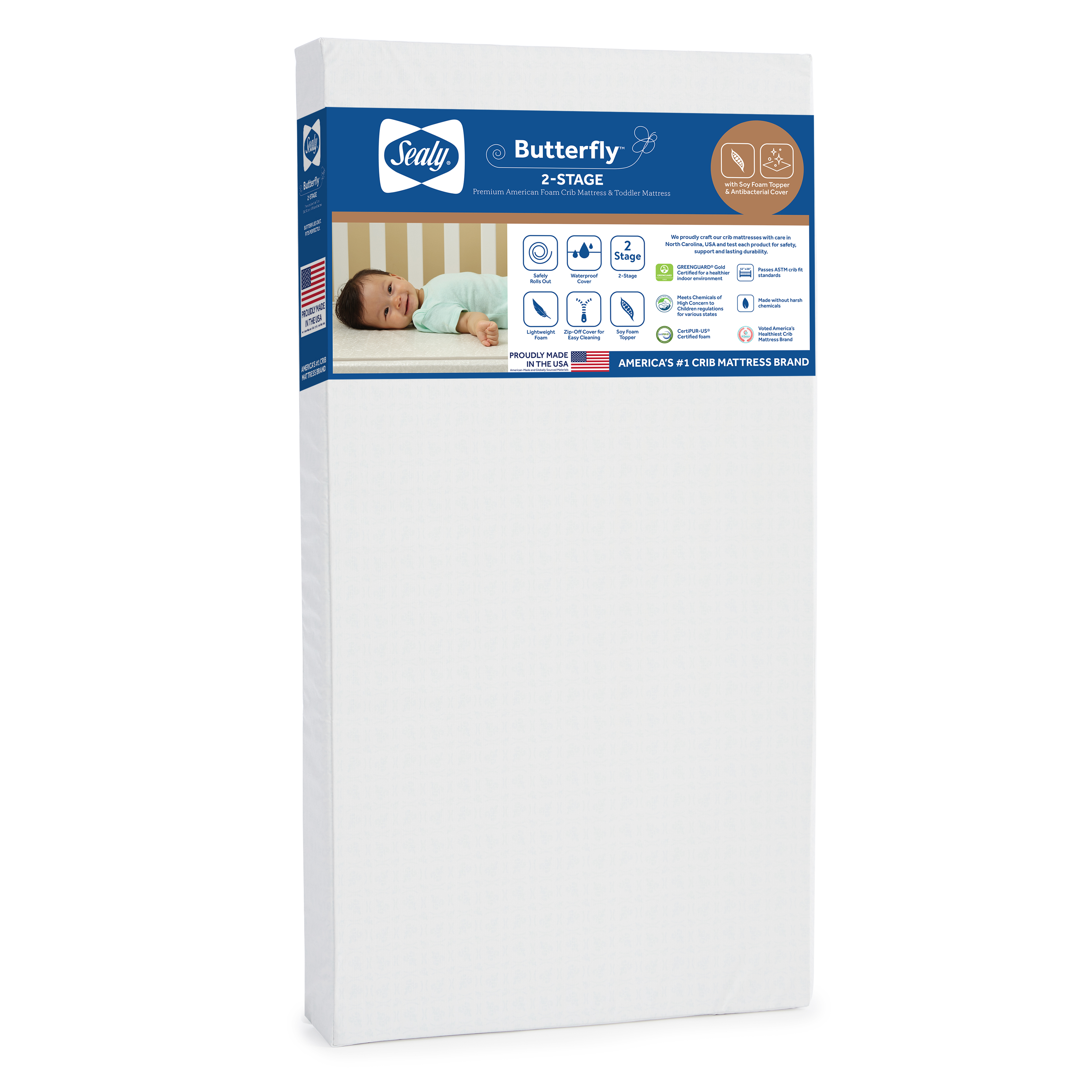 Sealy Butterfly 2-Stage Antibacterial Ultra Firm Crib Mattress Model: EM909-JDF Added by Brent Borhauer on November 7, 2024 Categories:Media Tags: Available Images and Media Main Image Marketing Images Product Image Original: 3300 x 3300 Swatch: 150 x 150 Medium: 800 x 800 Large: 1000 x 1000 Additional Marketing Images Beauty shot Original: 3300 x 3300 Swatch: 150 x 150 Medium: 800 x 800 Large: 1000 x 1000 Beauty shot w/ GG Original: 3300 x 3300 Swatch: 150 x 150 Medium: 800 x 800 Large: 1000 x 1000 MIB Original: 2000 x 2000 Swatch: 150 x 150 Medium: 800 x 800 Large: 1000 x 1000 Snug fit Original: 2000 x 2000 Swatch: 150 x 150 Medium: 800 x 800 Large: 1000 x 1000 Soy foam Original: 2000 x 2000 Swatch: 150 x 150 Medium: 800 x 800 Large: 1000 x 1000 Certifications Original: 2000 x 2000 Swatch: 150 x 150 Medium: 800 x 800 Large: 1000 x 1000 Waterproof Original: 2000 x 2000 Swatch: 150 x 150 Medium: 800 x 800 Large: 1000 x 1000 Lying down Original: 2000 x 2000 Swatch: 150 x 150 Medium: 800 x 800 Large: 1000 x 1000 Antibacterial Original: 2000 x 2000 Swatch: 150 x 150 Medium: 800 x 800 Large: 1000 x 1000 Soy enhanced Original: 2000 x 2000 Swatch: 150 x 150 Medium: 800 x 800 Large: 1000 x 1000 Original: 2000 x 2000 Swatch: 150 x 150 Medium: 800 x 800 Large: 1000 x 1000 Air quality certified Original: 800 x 800 Swatch: 150 x 150 Medium: 800 x 800 Large: 800 x 800 Positioning Original: 2000 x 2000 Swatch: 150 x 150 Medium: 800 x 800 Large: 1000 x 1000 Voted #1 Original: 2000 x 2000 Swatch: 150 x 150 Medium: 800 x 800 Large: 1000 x 1000