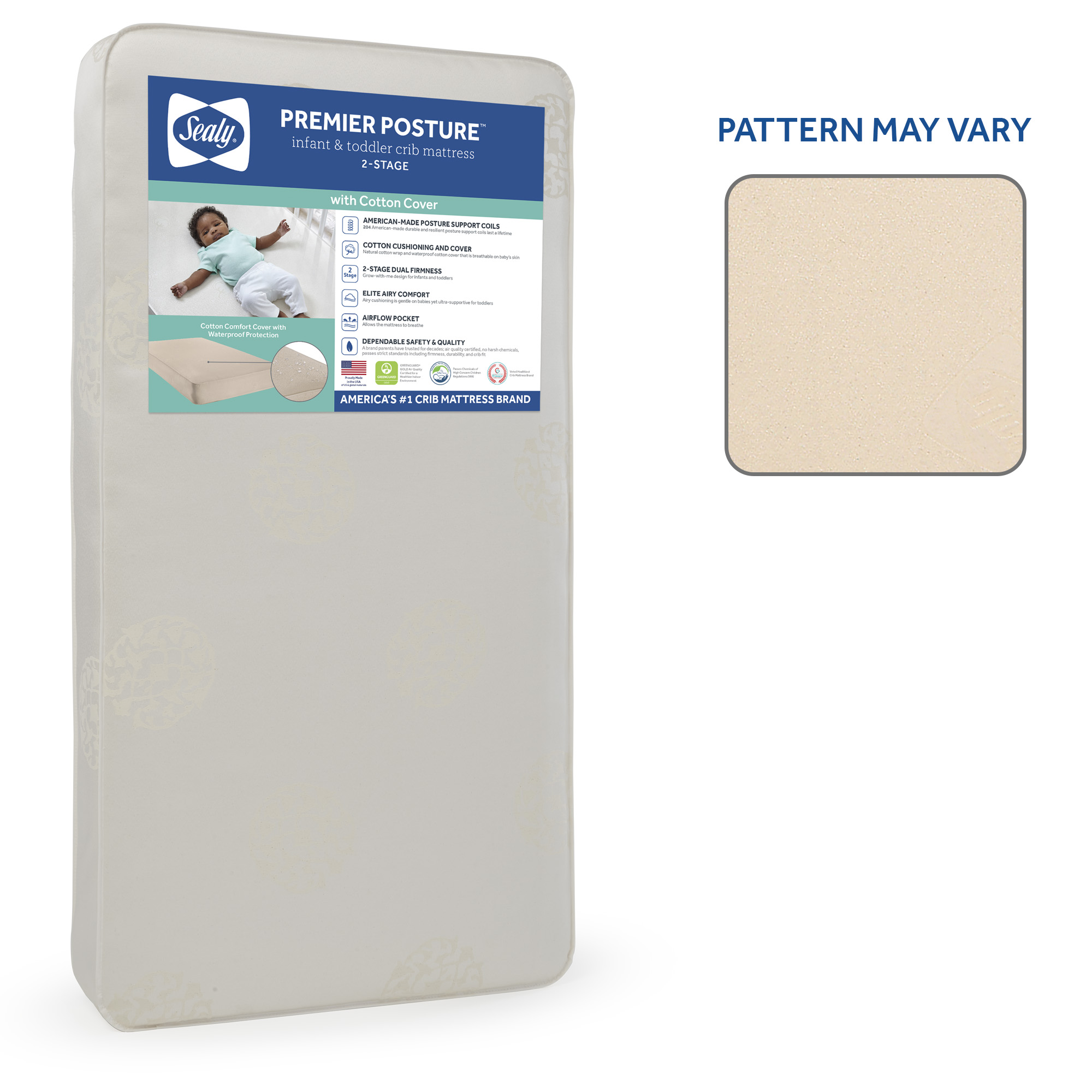 Sealy Premier Posture Crib Mattress EM540-DCW_CTX Model: EM540-DCW_CTX Added by Brent Borhauer on July 24, 2025 Categories:Media Tags: Available Images and Media Main Image Marketing Images Product Image Original: 3300 x 3300 Swatch: 150 x 150 Medium: 800 x 800 Large: 1000 x 1000 Additional Marketing Images Beauty shot Original: 3300 x 3300 Swatch: 150 x 150 Medium: 800 x 800 Large: 1000 x 1000 Beauty shot with GG Original: 3300 x 3300 Swatch: 150 x 150 Medium: 800 x 800 Large: 1000 x 1000 Pattern may vary Original: 2000 x 2000 Swatch: 150 x 150 Medium: 800 x 800 Large: 1000 x 1000 Snug fit promise Original: 2000 x 2000 Swatch: 150 x 150 Medium: 800 x 800 Large: 1000 x 1000 Certifications Original: 2000 x 2000 Swatch: 150 x 150 Medium: 800 x 800 Large: 1000 x 1000 Waterproof cover Original: 2000 x 2000 Swatch: 150 x 150 Medium: 800 x 800 Large: 1000 x 1000 Waterproof Original: 2000 x 2000 Swatch: 150 x 150 Medium: 800 x 800 Large: 1000 x 1000 Sizing Original: 2000 x 2000 Swatch: 150 x 150 Medium: 800 x 800 Large: 1000 x 1000 Sizing Original: 2000 x 2000 Swatch: 150 x 150 Medium: 800 x 800 Large: 1000 x 1000 2-Stage Original: 2000 x 2000 Swatch: 150 x 150 Medium: 800 x 800 Large: 1000 x 1000 Natural cotton Original: 2000 x 2000 Swatch: 150 x 150 Medium: 800 x 800 Large: 1000 x 1000 Breathable cotton cover Original: 2000 x 2000 Swatch: 150 x 150 Medium: 800 x 800 Large: 1000 x 1000 Natural cotton cushioning Original: 2000 x 2000 Swatch: 150 x 150 Medium: 800 x 800 Large: 1000 x 1000 204 Support coils Original: 2000 x 2000 Swatch: 150 x 150 Medium: 800 x 800 Large: 1000 x 1000 Firm and Safe Original: 3013 x 3013 Swatch: 150 x 150 Medium: 800 x 800 Large: 1000 x 1000 America's #1 Original: 2000 x 2000 Swatch: 150 x 150 Medium: 800 x 800 Large: 1000 x 1000 GG Original: 800 x 800 Swatch: 150 x 150 Medium: 800 x 800 Large: 800 x 800 Voted #1 Original: 2000 x 2000 Swatch: 150 x 150 Medium: 800 x 800 Large: 1000 x 1000