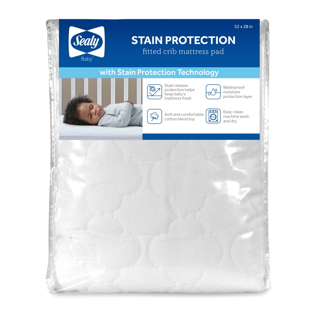 Sealy Stain Protection Waterproof Fitted Crib Mattress Pad